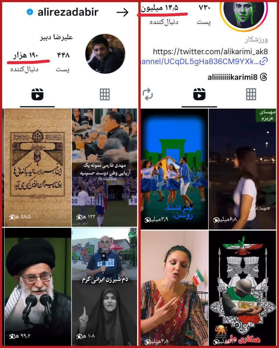 📌سهم علیرضا دبیر با محتواهای انقلابی، ۱۹۰ هزار فالوور با ویوهای چندهزاری!